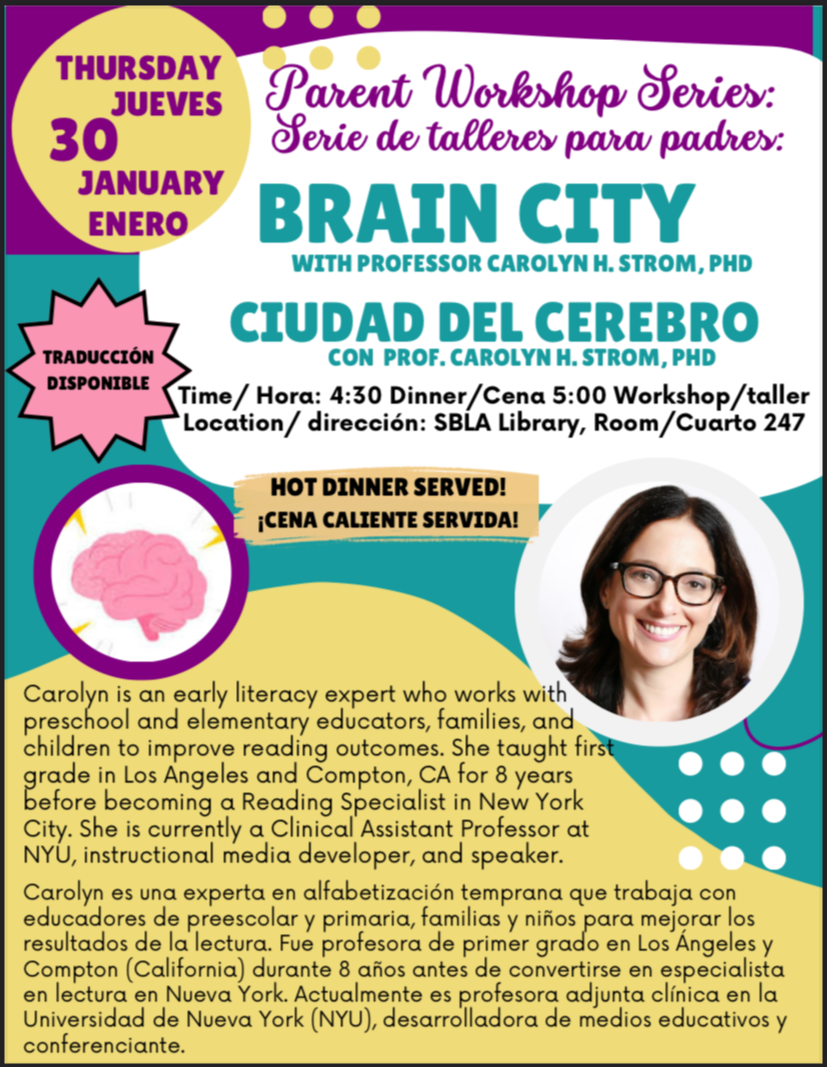 South Bronx Literacy Academy Serie de Talleres para las Familias: